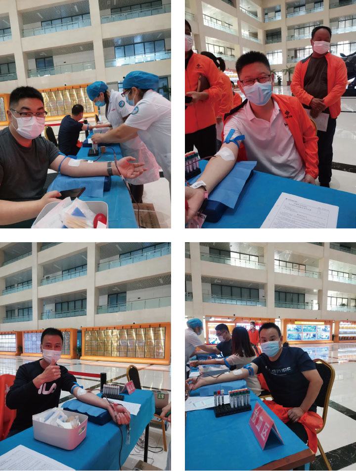 在獻血者的隊伍中,有市場一線精英,也有研發(fā)、生產(chǎn)及后勤保障人員。在醫(yī)護人員的指導下,大家按照流程填寫獻血申請表、進行健康檢測,有條不紊的完成獻血前的各項準備工作。經(jīng)過采血檢驗合格后,大家紛紛擼起袖子、伸出手臂、握緊拳頭開始獻血,一袋袋熱血就像一顆顆愛心,傳遞著大禹人無私奉獻的社會責任感。