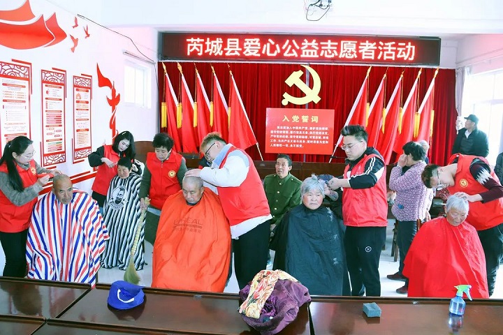 本次活動經過精心籌備,芮城縣愛心公益志愿者協會的30余名志愿者分工明確,廚師組、后勤組、理發組、義診組、文藝演出組,他們緊張有序地忙碌著,為老人們提供各項志愿服務。