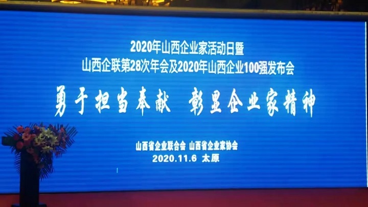 11月6日,2020年山西企業家活動日暨山西企聯第28次年會及2020山西100強企業發布會在太原市隆重召開。