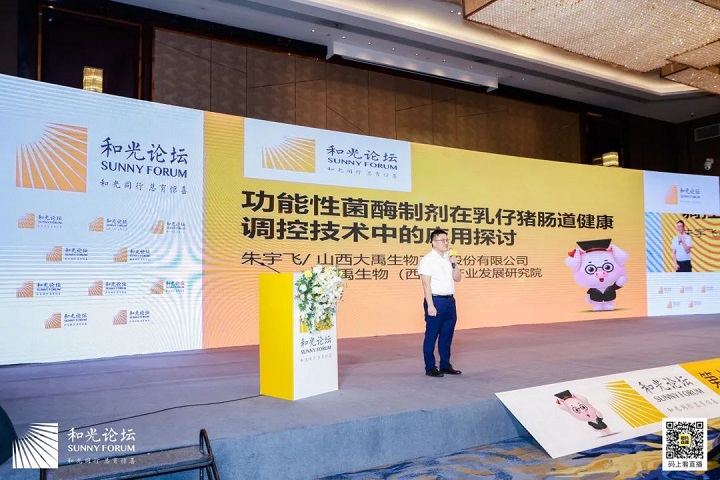 大禹生物技術總監(jiān)——朱宇飛博士,在本次論壇上作《功能性菌酶制劑在乳仔豬腸道健康調控技術中的應用探討》主題報告。